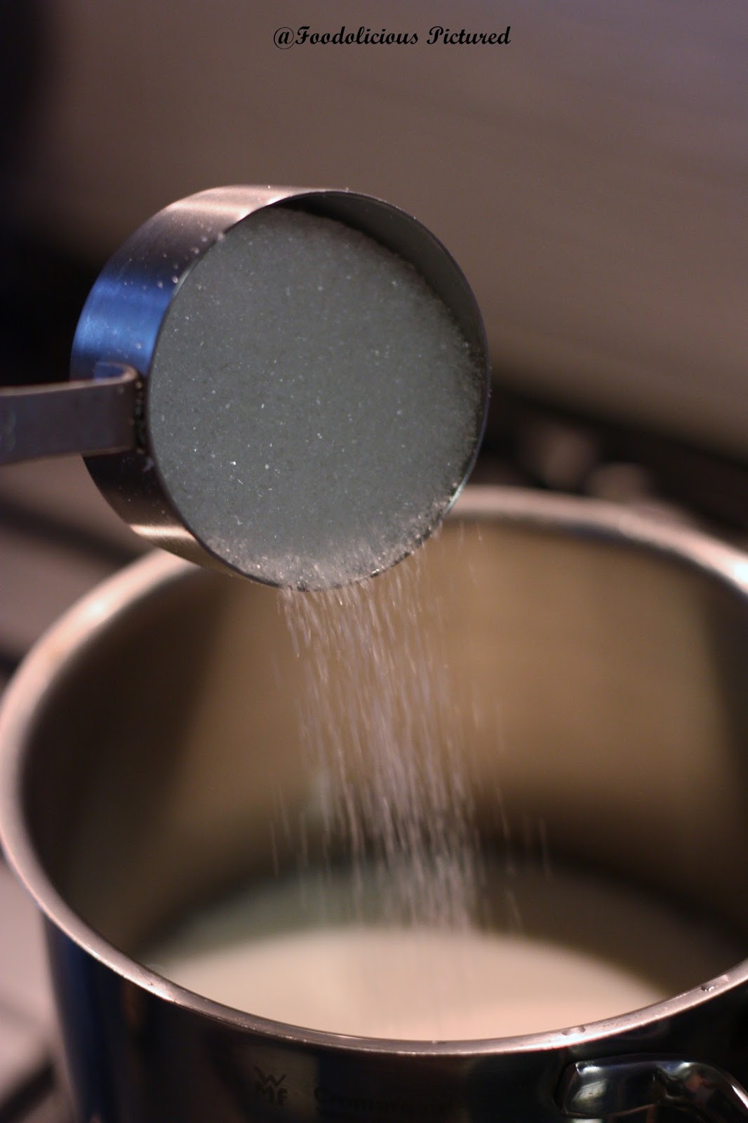 In pan heat the milk and sugar stirring till the sugar has dissolved completely. Turn of the heat and allow to cool at room temperature. Once cooled stir in the blueberry puree, cream, sugared zest, vanilla essence and beat well with a electric beater till everything is combined.